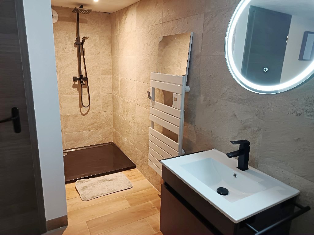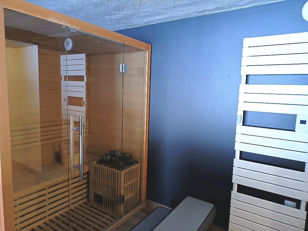 Rez de Jardin : - 2 Chambres , + un espace dédié complètement à l'espace détente , avec Sauna , Spa 4/5 pers , belle salle d'eau complète , fauteuil de massage , cellier , buanderie .