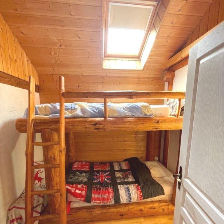Étage : - hall de nuit desservant 3 belles chambres , 1 suite parentale , 1 chambre avec lit double , et 1 chambre avec lit superposé en rondins , rangement .