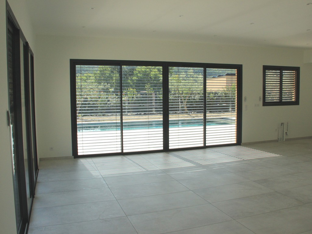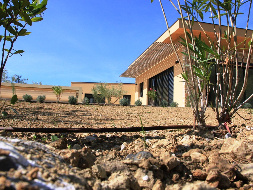 Posé sur un beau terrain aménagé plein sud , confortable et lumineuse Villa neuve de plain pied offrant 164 m2 habitables avec piscine 10 x 3,50 m , grande terrasse carrelée , garage avec porte motorisée , terrain clôturé de 1284 m2 et Magnifique vue dégagée sur le Mont Ventoux .