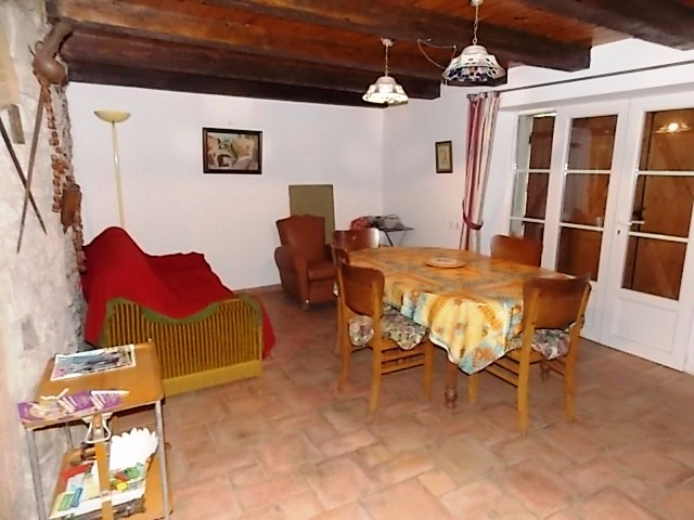 Rez : - Entrée sur Salon , Cuisine , Salle d'eau , wc , 1 chambre , + grande dépendance aménageable .