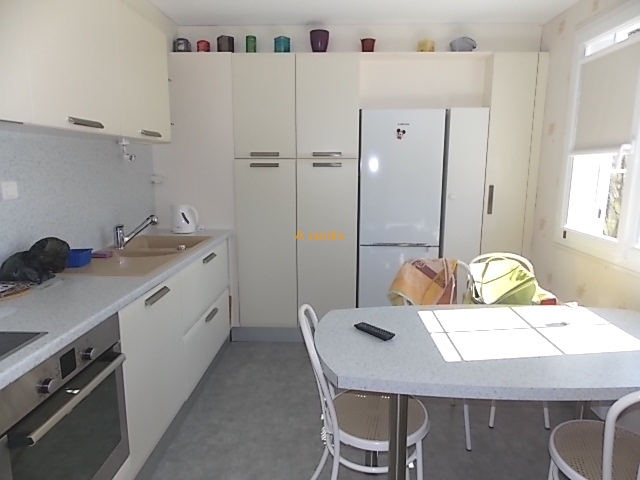 Rez de chaussée : - Entrée , Cuisine complétement équipée avec coin repas , Séjour en L avec portes fenêtres donnant sur terrasse plein sud , 2 Chambres dont une avec dressing , Salle de bains ( baignoire balnéo et douche ) , wc .