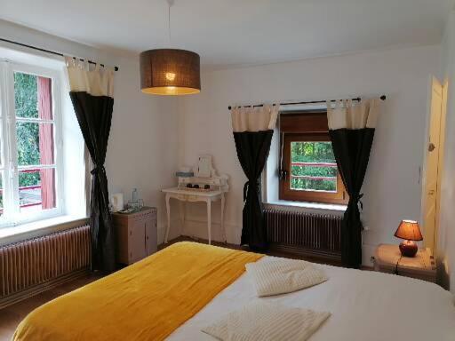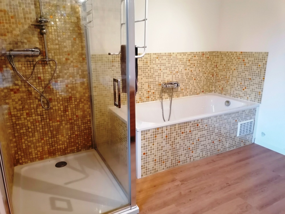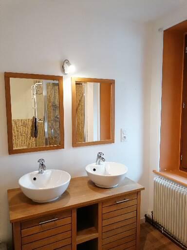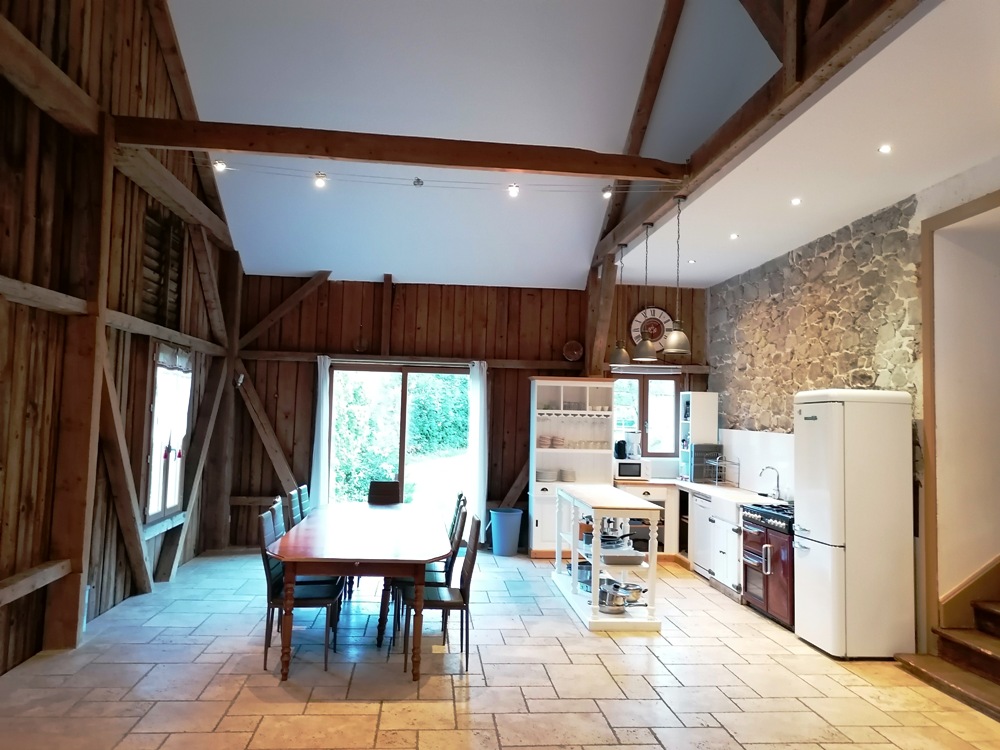 Ferme 12 pers : - Entrée , local technique , wc , douche , buanderie , 1 er : Très grande pièce de vie avec plafond cathédrale et cuisine américaine ouverte cheminée insert et accès terrasse , Étages en demis niveaux : Mezzanine , 4 chambres et dortoir , 2 sdb .