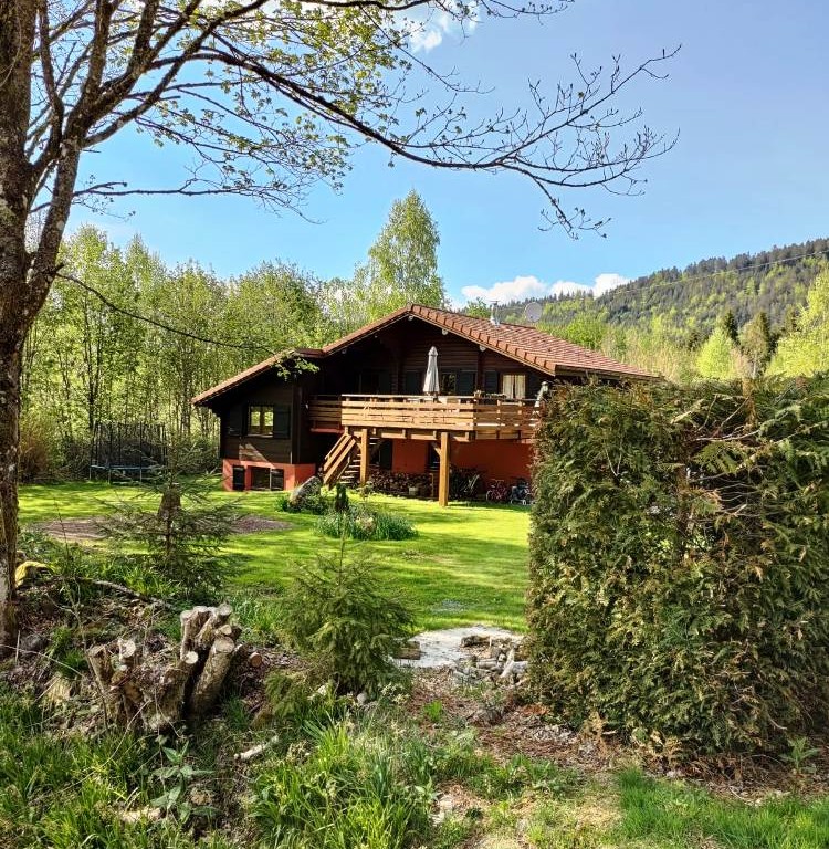 Chalet : beau séjour salon avec poêle à bois , cuisine équipée , accès grande terrasse , 6 chambres , 3 salle de bains , 2 wc , buanderie , rangement , garage voitures , beau jardin aménagé .