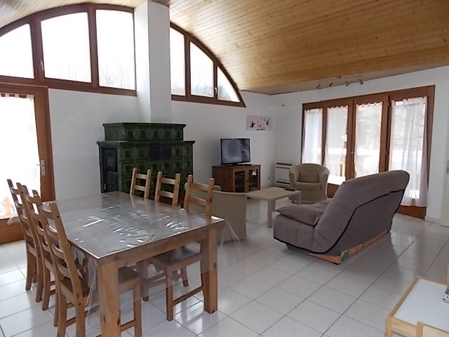 Rez : - Hall d'entrée , gd Cuisine super équipée , grande pièce de séjour( très lumineuse et atypique avec poêle Karloff en faïence et plafond en arrondi ) et donnant sur balcon et terrasse , dégagement , salle de bains ( douche Italienne , meuble vasque , wc ) .