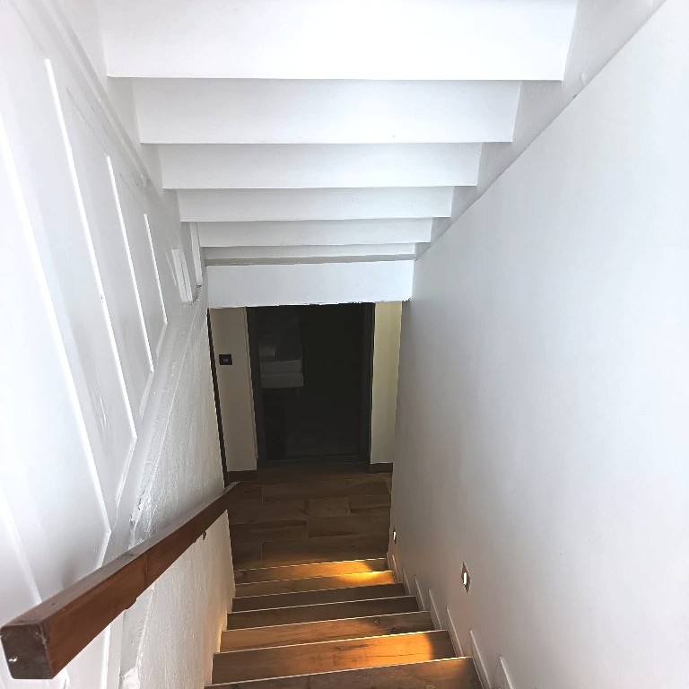 Rez de Chaussée : - Entrée sur beau grand séjour de 50 m2 agrémenté d'une cuisine équipée à l'Américaine , cette belle pièce de vie donne accès à une belle grande terrasse bois de 40 m2 sécurisée , escalier monumental type hôtel desservant les 2 étages .