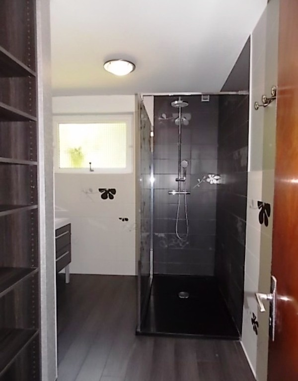 Rez de jardin : - entrée principale , garage pour 2 voitures , cave , chaufferie , buanderie avec douche et wc , 1 pièce pouvant prendre fonction de chambre ou bureau , jardin d'hiver .