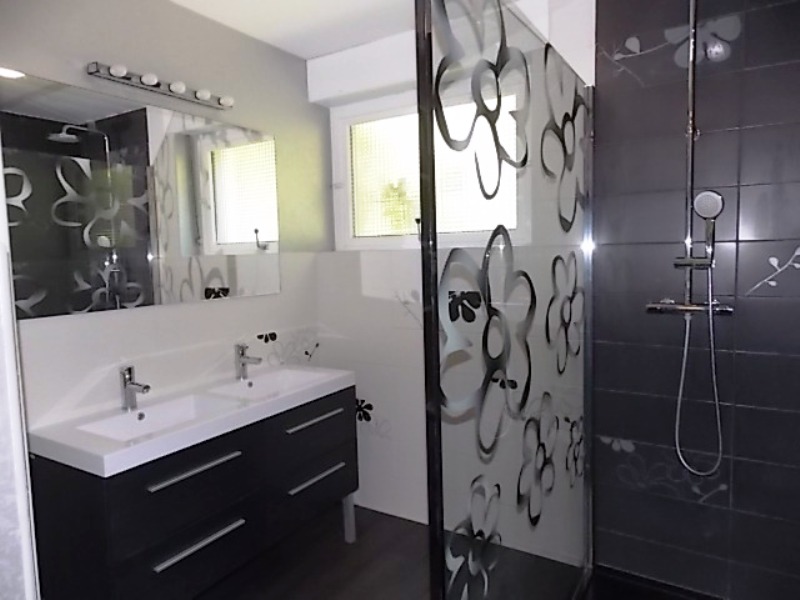 1er niveau : - Hall desservant une grande cuisine équipée ( accès balcon ) , salon séjour en L d'environ 30 m2 avec cheminée et accès balcon rejoignant également le jardin , 3 chambres rénovée récemment , ainsi qu'une salle de bain neuve avec douche à l'italienne et meuble vasque .