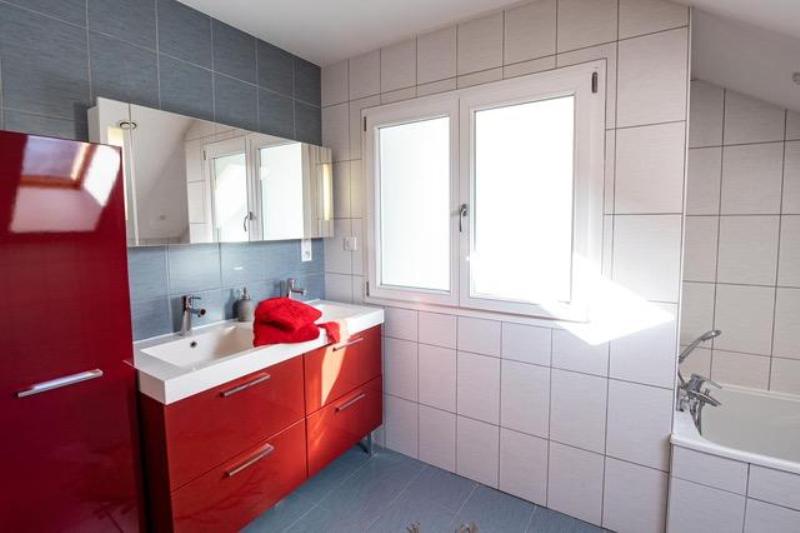 Rez de chaussée : - Entrée sur vaste séjour de 60 m2 agrémenté d'un belle cuisine Américaine super équipé , d'une cheminée insert bois et d'un balcon terrasse avec vue sur les monts Vosgiens et la rivière , un grand filet de catamaran de 12m2 surplombe le séjour pour le plus grand bonheur des enfants , vous aurez également accès à une belle grande terrasse avec pergola bio climatique et mur d'eau , 1 grande chambre avec accès balcon , 1 grande salle d'eau avec douche à l'Italienne , wc et garage buanderie facilement aménageable en espace détente ( spa,sauna ) complètent ce niveau .