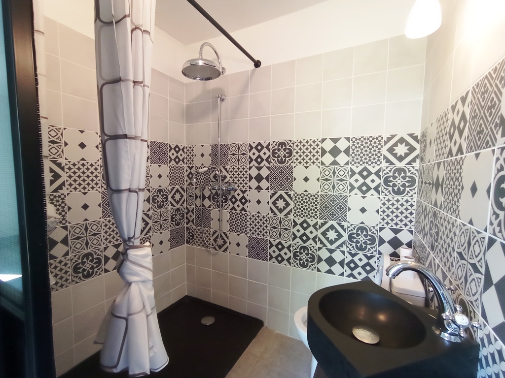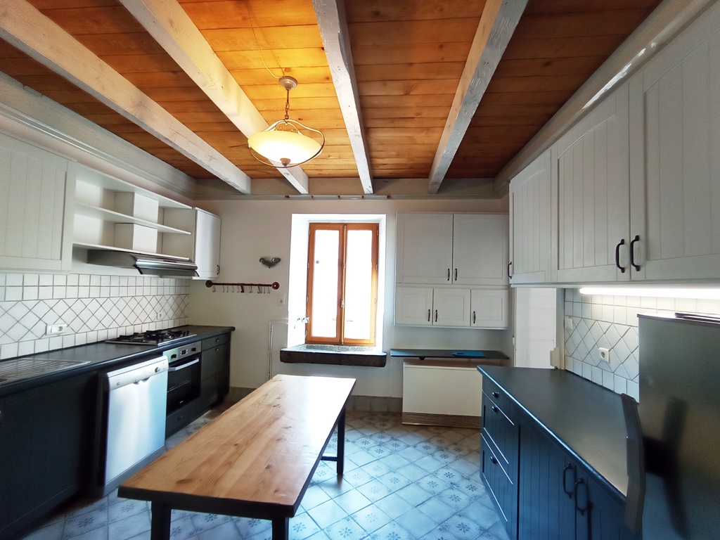 Rez de chaussée : - Entrée , grande cuisine équipé , salle à manger , grand salon séjour , salle d'eau avec douche à l'Italienne et vasque , ( chaque niveau faisant à peut près 100 m2 ) , accès vers grandes caves .