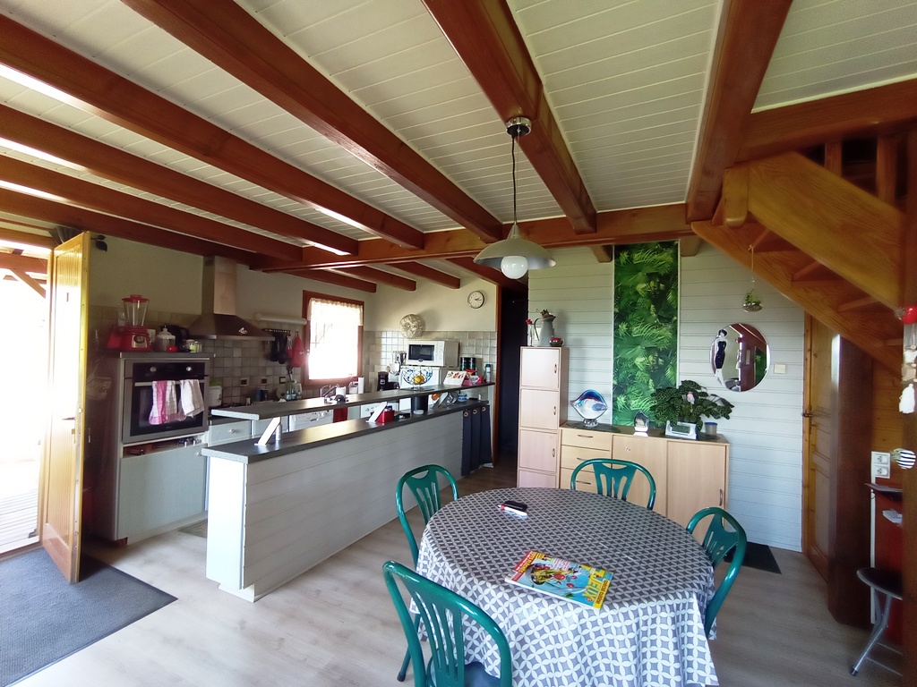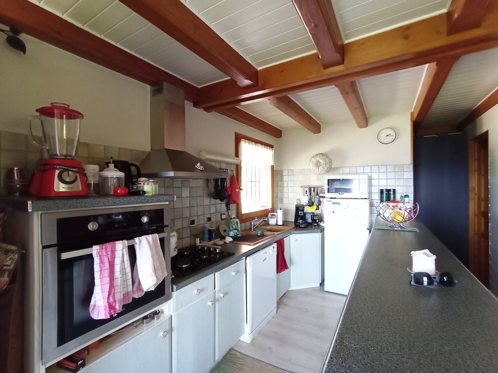 Confort : - Chauffage central gaz , fenêtres dbl vitrage bois , belle terrasse couverte de 24 m2 , parking pour plusieurs voitures , terrasse avec barbecue , jardin , cabanon , toiture en bon état , vide sanitaire sous le chalet , boiseries , lasures , l'ensemble en très bon état général .