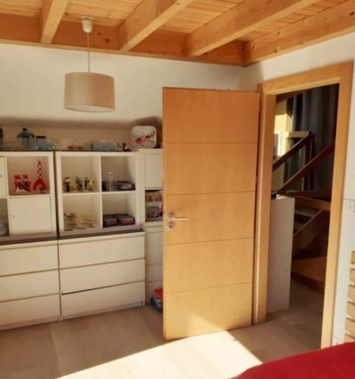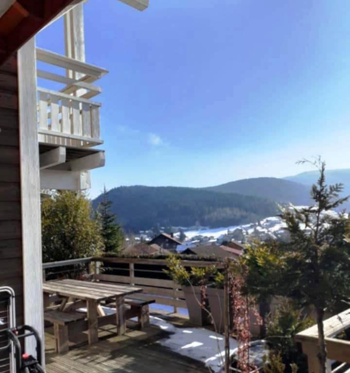 Majestueusement ancré en promontoire de son terrain aux abords aménagés et paysagés , ce spacieux chalet de 140 m2 sol , dessiné par son propriétaire Architecte avec une distribution originale et sympathique de demi-niveaux , jouant intentionnellement avec les volumes et une grande clarté notamment procurée par un ensoleillement top sud , dans un quartier calme sans bruit de passage , vous offrira une magnifique vue panoramique sur Xonrupt et bien au delà depuis sa belle terrasse ou balcon de l'étage , l'intérieur tout en bois clair amène une touche de modernité pour ce chalet contemporain qui sera votre refuge familial pour vos escapades en famille dans les Hautes Vosges , ou éventuellement pour un excellent rendement locatif saisonnier .