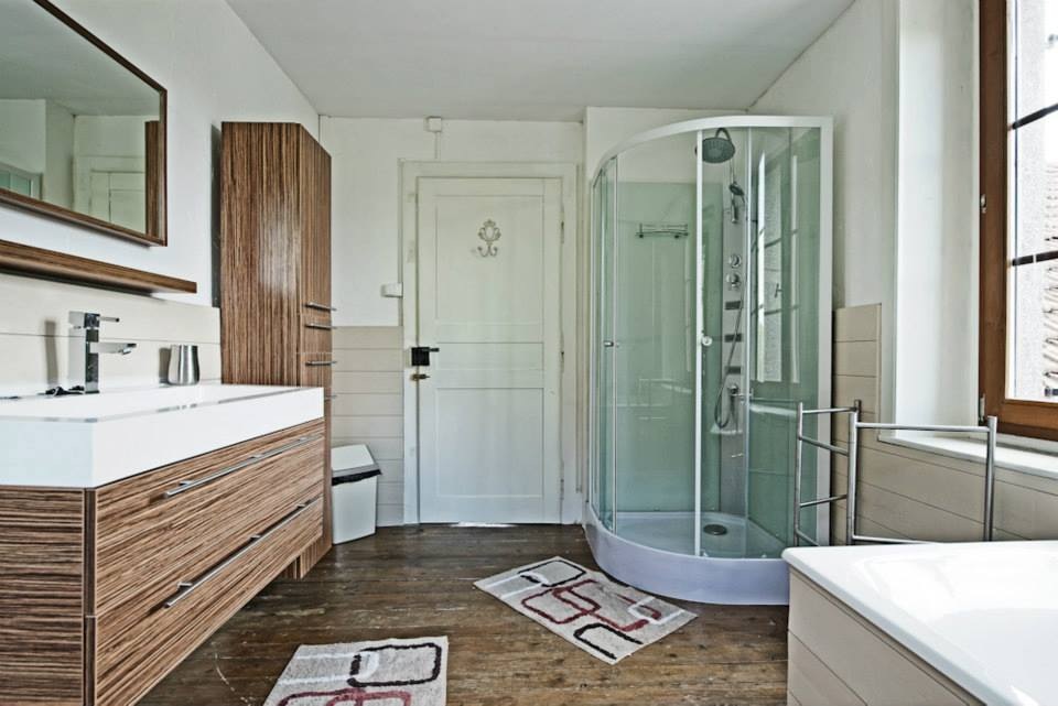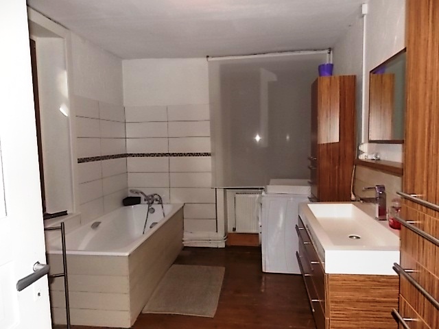 Étage : - Hall de nuit desservant 4 belles gd chambres , 1 salle de bain avec douche , baignoire et vasque , wc , accès vers grand grenier encore aménageable sur toute sa surface .