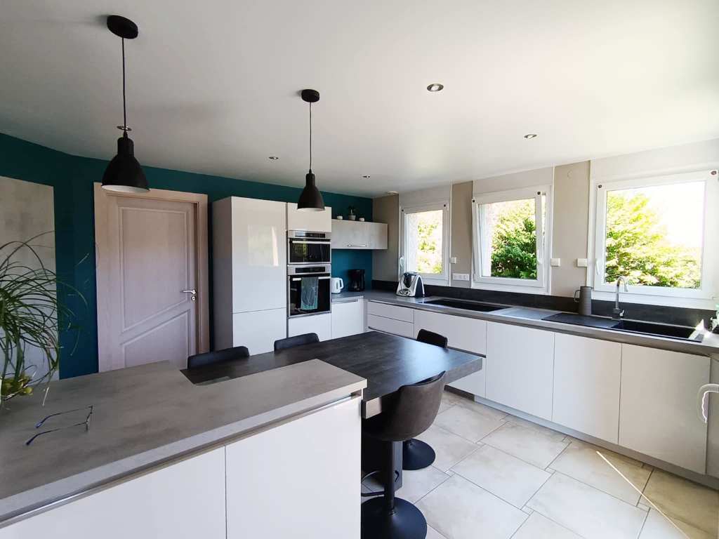 Rez de chaussée : - Entrée , beau séjour avec espace salon et salle à manger ( accès terrasse ) , grande cuisine super équipée ouverte sur le séjour ( accès terrasse également ) 1 buanderie cellier jouxtant la cuisine , 1 suite parentale chambre avec salle d'eau , 1 wc séparé , un second cellier qui pourrait accueillir un sauna , placards , et accès vers double garage avec portes sectionnelles automatisées et 1 grenier au dessus .