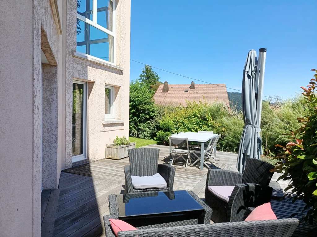 Bien ancrée sur son beau terrain aménagé , arboré et paysagé de 1216 m2 en plein sud , juste face aux pistes du domaine skiable aux premières loges pour assister aux descentes au flambeau et aux feu d'artifices depuis ses nombreuses baies vitrées et grandes ouvertures pour une vue imprenable à 180 ° sur la ville de Gérardmer et cela depuis un quartier très calme ! sans nuisances sonores et ou il fait bon vivre , cette qualitative Villa type architecte , sa belle distribution , ses 5 chambres , ses beaux volumes et sa grande clarté , le tout à l'état quasi neuf , se montrera idéale pour une grande famille avec enfants ( Lycée à 5 min à pied ) , commerces et activités également à 5 min , ou en tant que résidence secondaire de qualité , ou pour un excellent rendement locatif saisonnier de par sa capacité de 10 à 12 personnes .