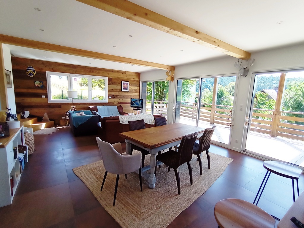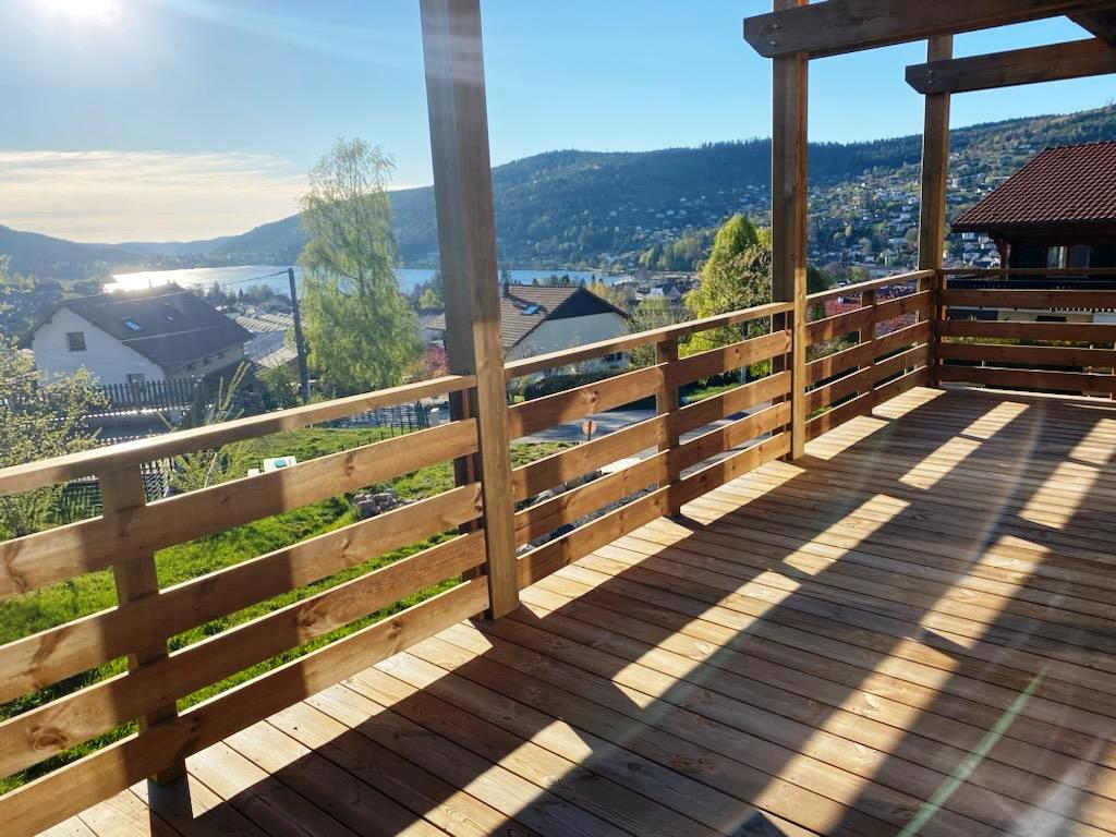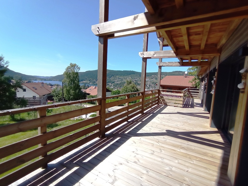 Coteau prisé , exposition sud ouest , vue panoramique sur le Lac , 170 m2 , 5 min à pied du centre de Gérardmer par une bucolique passée communale , un terrain de 1050 m2 avec la possibilité d'y ajouter des équipements tels que piscine ou autres , une partie habitation confort , lumineuse et ensoleillée toute la journée , un garage pour 3 voitures d'environ 60 m2 facilement transformable en 1 appartement avec vue lac , ET déjà existantes et exploitées , 2 chambres d'hôtes tout confort au rez de jardin avec accès privatif , le beau Chalet multi cartes en somme .