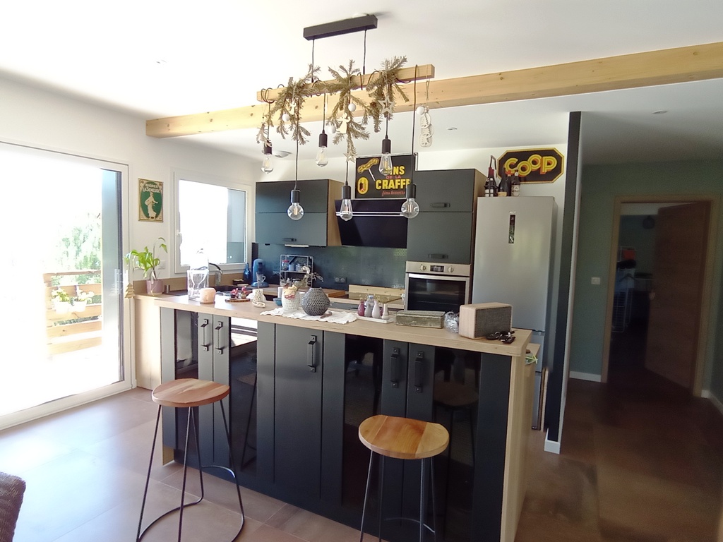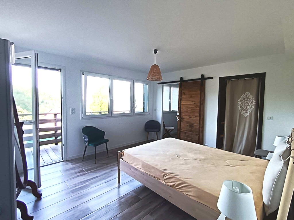 Rez de chaussée : - Entrée sur vaste pièce de vie avec cuisine équipée à l'Américaine , et pourvue de baies vitrées coulissantes donnant sur une grande terrasse avec magnifique vue Lac et coteau , 1 suite parentale ( accès terrasse ) avec dressing et salle d'eau , wc , buanderie , dégagement .