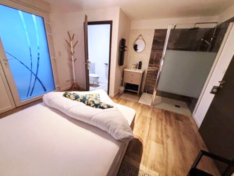 Rez de jardin : - 2 belles chambres d'hôtes spacieuses et confortables avec vue Lac , chacune bénéficie de son accès indépendant depuis l'extérieur , hall , grand garage , vastes Parkings .