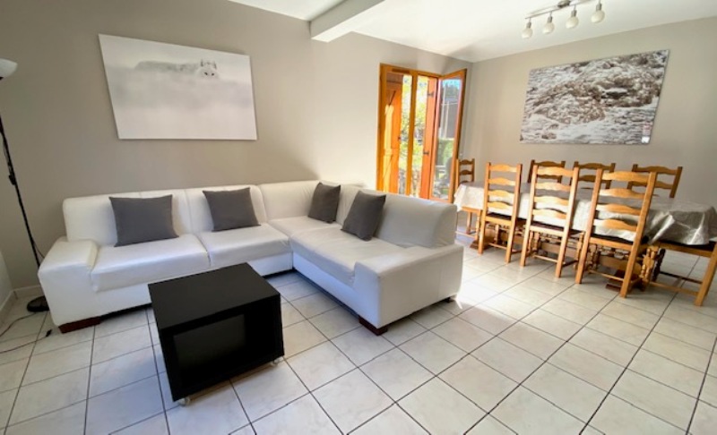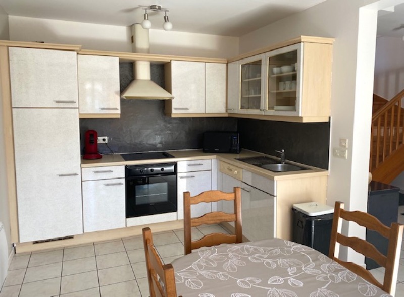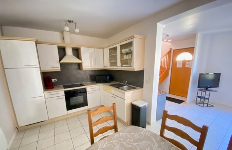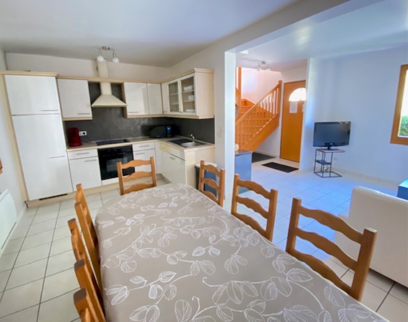 Rez de chaussée : - entrée sur Séjour avec cuisine équipée ouverte ( accès vers terrasse sud équipée d'un store électrique ) , 1 belle chambre , 1 salle de bain , baignoire et vasque , local technique et wc .