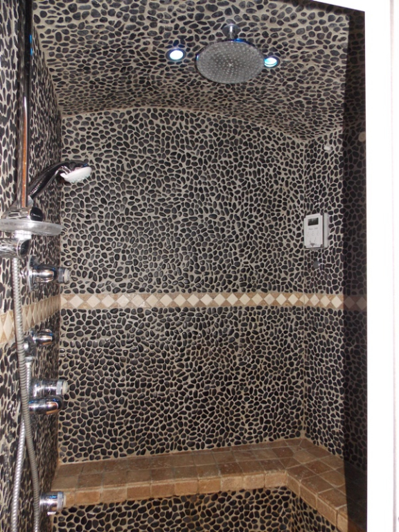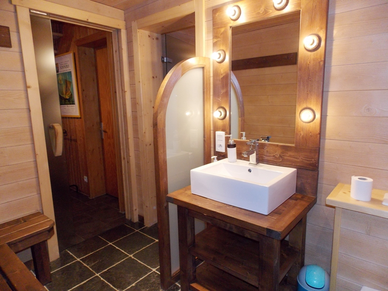 Rez de Jardin : - double Garage , Entrée , 1 Chambres 4 pers , 1 Chambre avec Sauna , 1 Salle d'eau avec douche hydro massage et fonction Hammam , cellier , accès belle Terrasse couverte de 40 m2 .