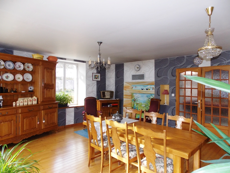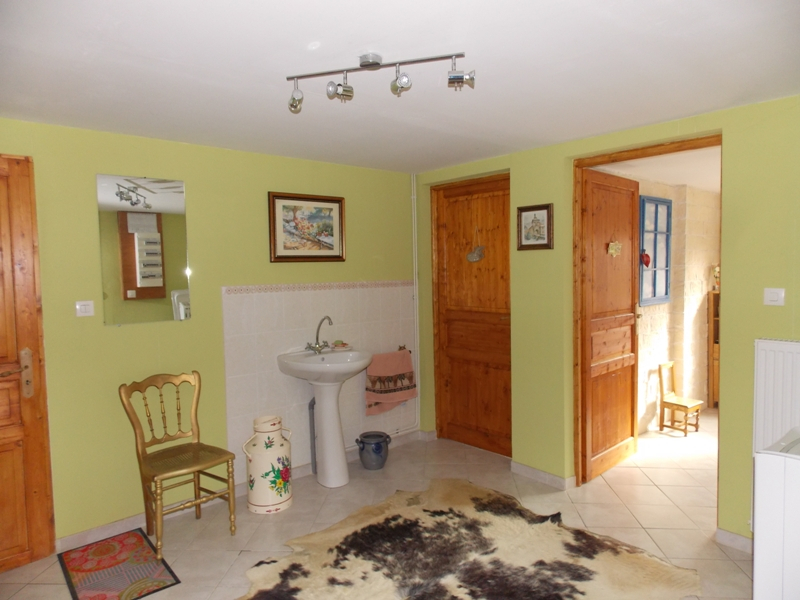 Rez de chaussée : - Hall d’accueil , Séjour , gd Cuisine avec cheminée et accès Terrasse extérieure , 1 gd Chambre avec wc , Cellier , cave voûtée , gd dégagement vers Salle de bain et wc , buanderie et accès vers grandes Dépendances .