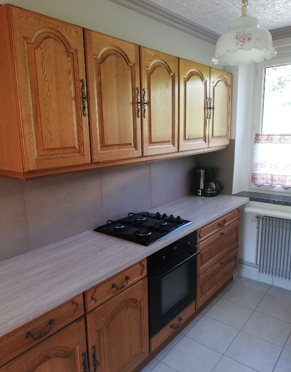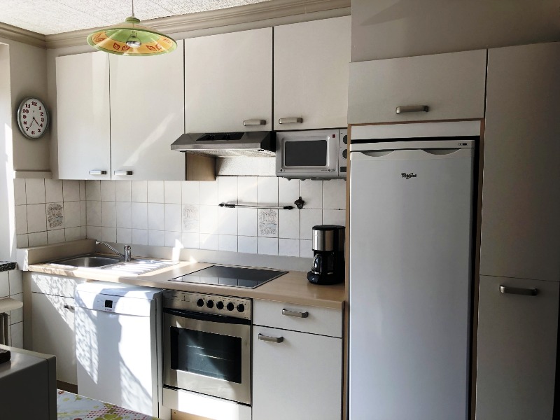Appartement 1 avec un grand séjour , cuisine équipée , salle de bains , wc .