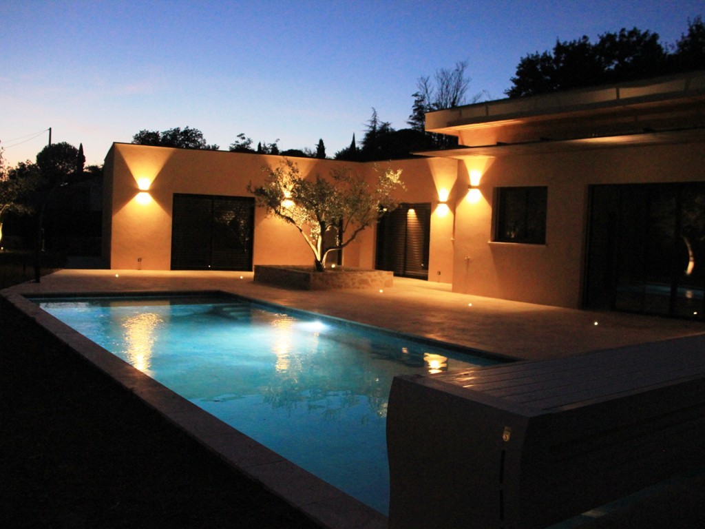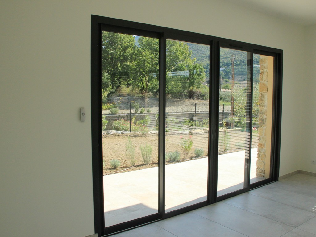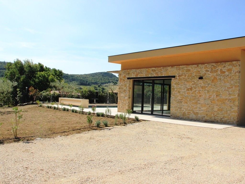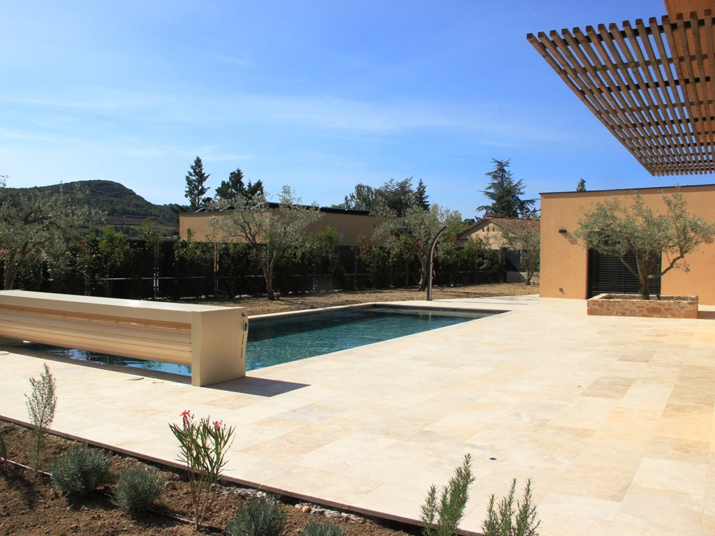 Posé sur un beau terrain aménagé plein sud , confortable et lumineuse Villa neuve de plain pied offrant 164 m2 habitables avec piscine 10 x 3,50 m , grande terrasse carrelée , garage avec porte motorisée , terrain clôturé de 1284 m2 et Magnifique vue dégagée sur le Mont Ventoux .