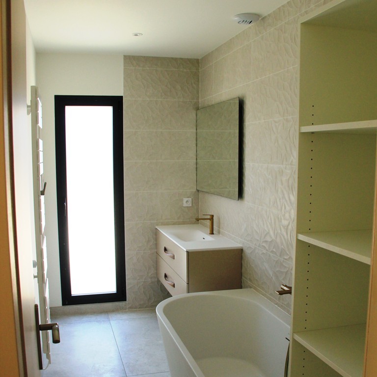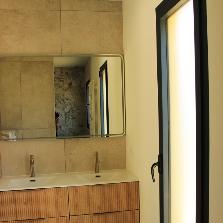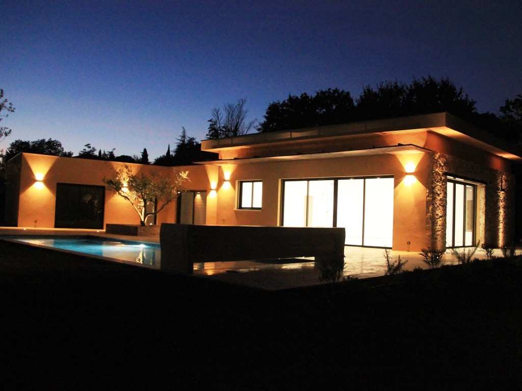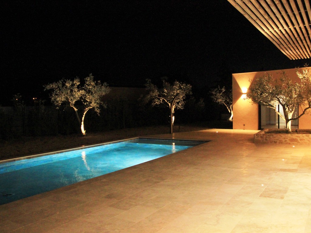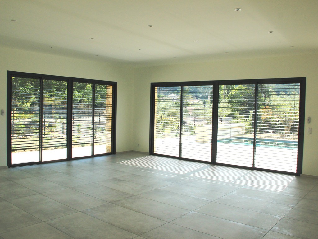 Posé sur un beau terrain aménagé plein sud , confortable et lumineuse Villa neuve de plain pied offrant 164 m2 habitables avec piscine 10 x 3,50 m , grande terrasse carrelée , garage avec porte motorisée , terrain clôturé de 1284 m2 et Magnifique vue dégagée sur le Mont Ventoux .