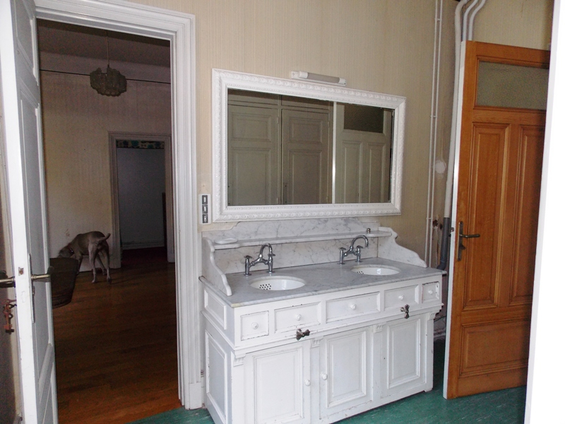 - Arrivée par escalier d'apparat sur un palier desservant 5 chambres dont une avec cheminée école de Nancy Style Louis XVI en marbre , toutes les chambres avec point d'eau et vasques d'époque impeccables , 1 salle d'eau avec lingère et double vasque et wc , 1 salle d'eau avec double vasque , 1 salle de bain ( baignoire et vasque ) , wc et local de rangement donnant sur l'escalier de " service " .