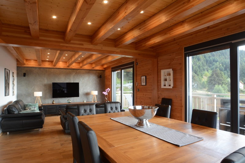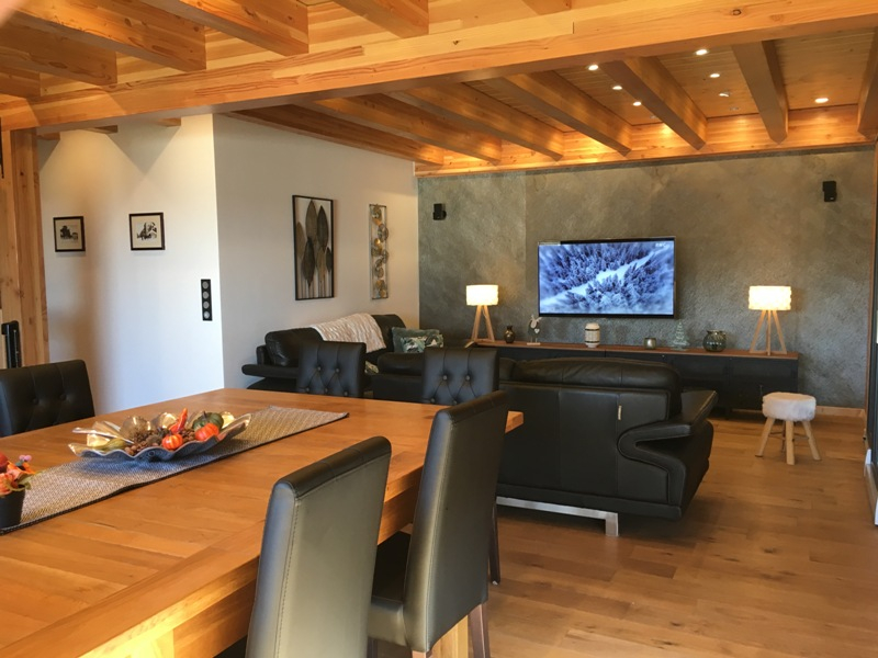 Rez de Chaussée : - Hall d'entrée , wc , placard , gd Séjour de 40 m2 avec baies vitrées coulissantes offrant une vue sur le Lac depuis votre table et accès Terrasse extérieure 24 m2 , Cuisine super équipée ouverte sur séjour , 1 Suite parentale avec vue pistes ( douche à l'italienne , et dressing ) , parquet massif chêne sur tout ce niveau , système sono acoustique de pointe , Garage ( porte automatique ) + cellier local à ski avec accès extérieur .
