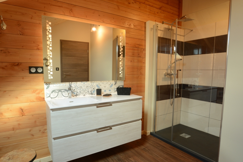 Confort : - Chauffage par pompe à chaleur , dbl vitrages , volets électriques , tout à l'égout , construction tout en pin Douglas de haute qualité , Parkings , abords aménagés , accès facile de plain pied , très clarteux , ensoleillé et agréable à vivre .