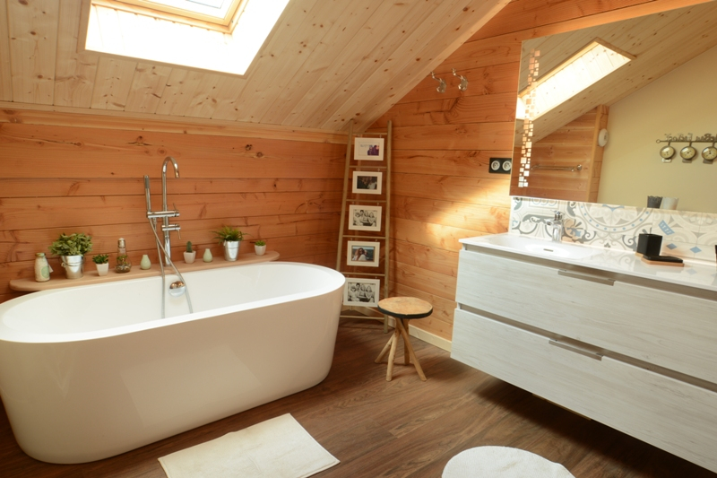 Étage : - Hall de nuit desservant 3 belles grandes Chambres de 15 m2 , 1 Salle de bain avec Baignoire , douche à l'italienne , meuble vasque , lingerie , et wc .