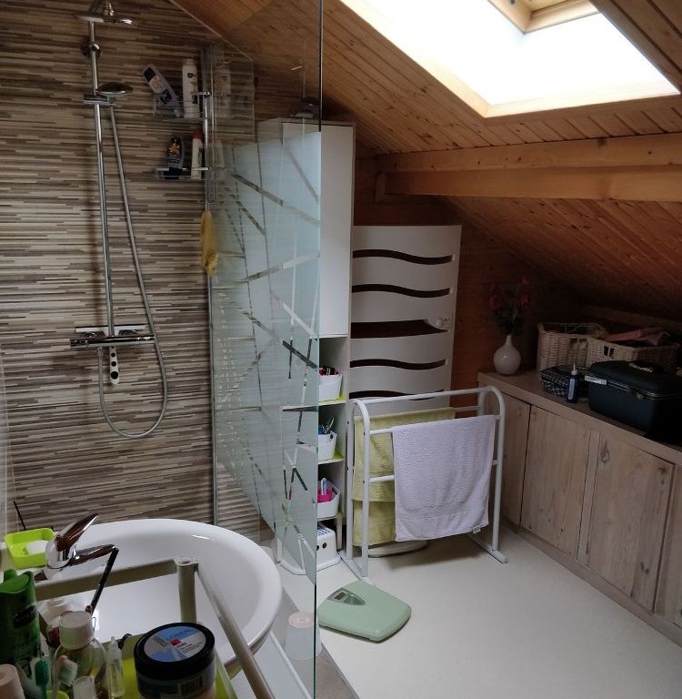 Étage : - hall de nuit , gd salle de bain , wc , 3 belles chambres équipée de placards fait sur mesure ( 2 des chambres donnent sur un balcon ) .