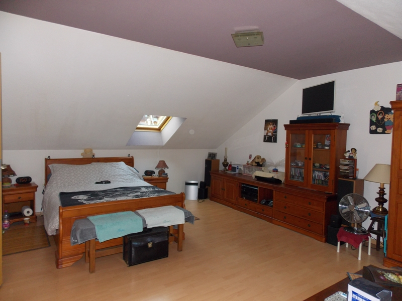 Étage : - palier desservant 2 belles chambres , + 1 très grande chambre suite parentale avec salle de bain .