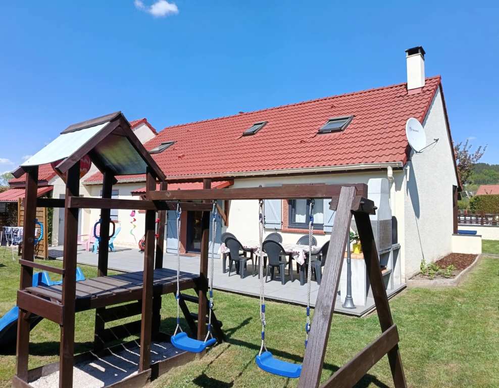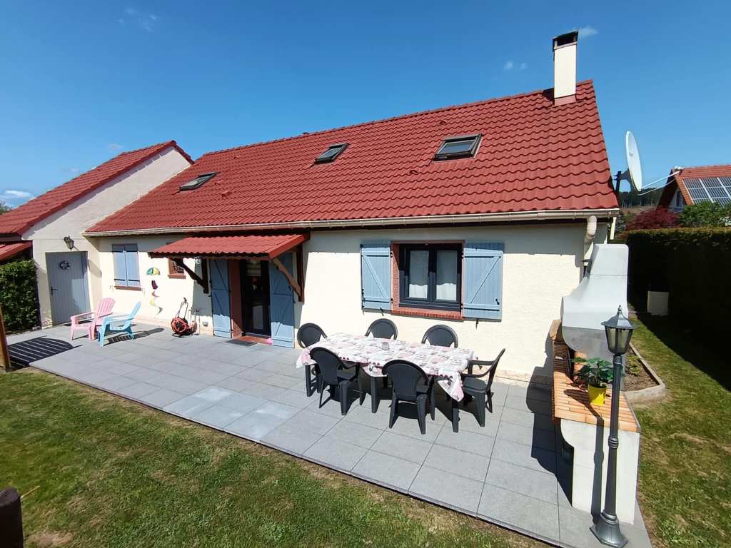 Posé sur son terrain aménagé et clôturé au cœur d'un quartier résidentiel calme finissant en impasse , et cependant à 2 pas de tout ainsi que des grands axes desservant tant les Hautes Vosges que l'Alsace cette charmante et spacieuse maison T6 de 140 m2 superbement exposée plein sud du matin au soir sur le jardin et sa grande terrasse de 50 m2 équipé d'un grand BBQ Béton et four à Pizza sera idéale pour une famille avec enfants , cette maison ou l'on peut vivre aussi uniquement de plain pied ou en totalité avec l'étage spacieux se montrera adaptée à vos besoins futurs .