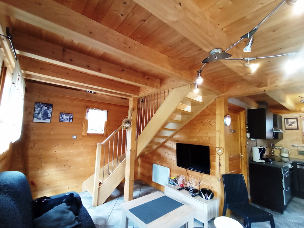 Étage : - Petit salon TV console en mezzanine , 3 belles grandes chambres . Confort : - Chauffage électrique et bois , fenêtres dbl vitrages , volets , tout à l'égout , cabanon intégré sous terrasse pour rangement vélos , skis etc , ainsi qu'un petit grenier surplombant , beau jardin paysagé , vue sur les étangs , intérieur " impeccable " et pour le prix entièrement équipé de A à Z ! , prêt à rentabiliser .